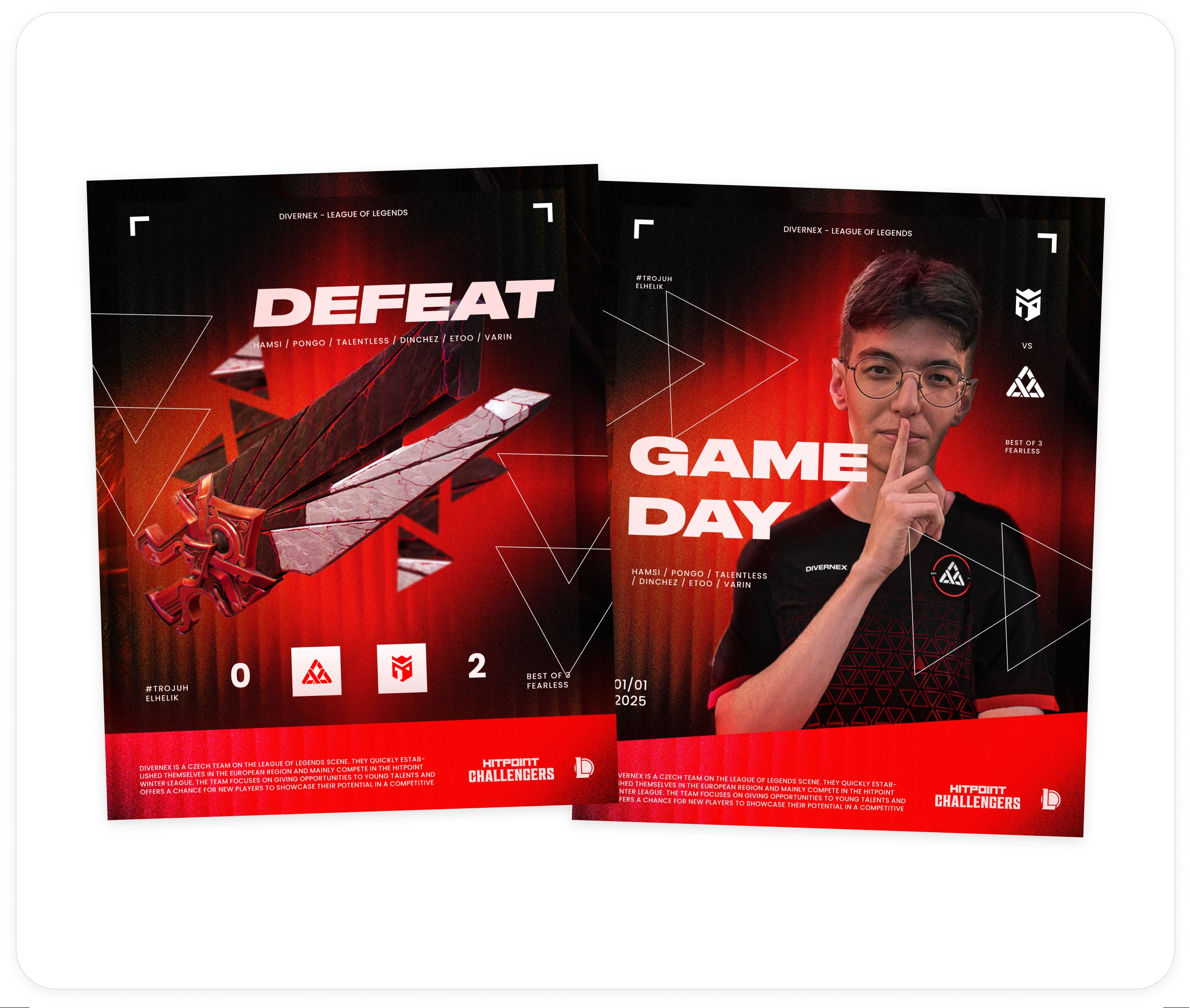 Gaming team branding and social media content.